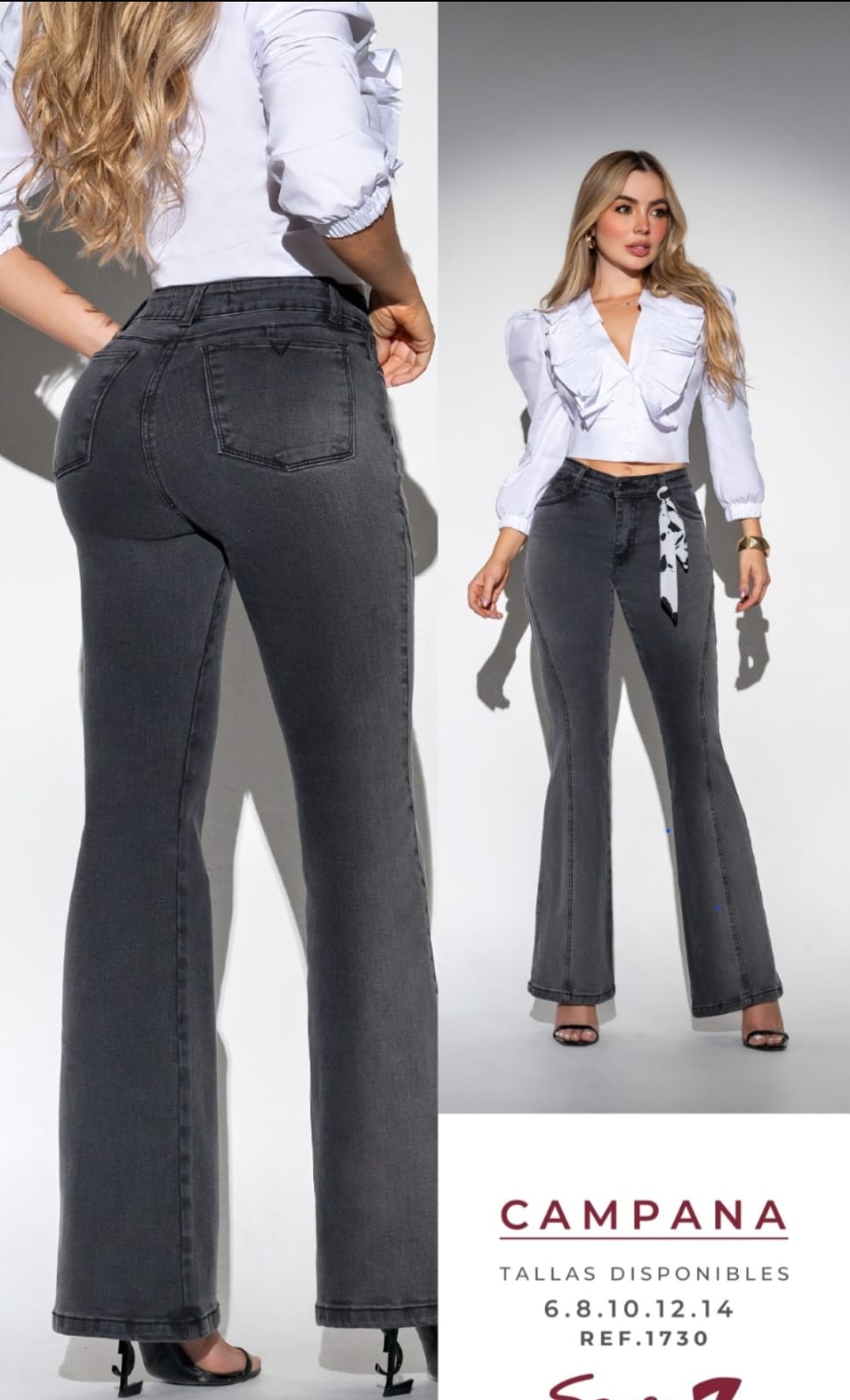 Pantalón bota campana en gris que combina comodidad y estilo. Diseño versátil con pretina de un solo botón para un cierre práctico y seguro, además de bolsillos funcionales en la parte trasera. Su corte acampanado en la bota proporciona una silueta moderna y favorecedora que se adapta a cualquier ocasión, desde el día a día hasta eventos más especiales. Una pieza esencial que elevará tu guardarropa con su elegancia discreta y versatilidad incomparable.