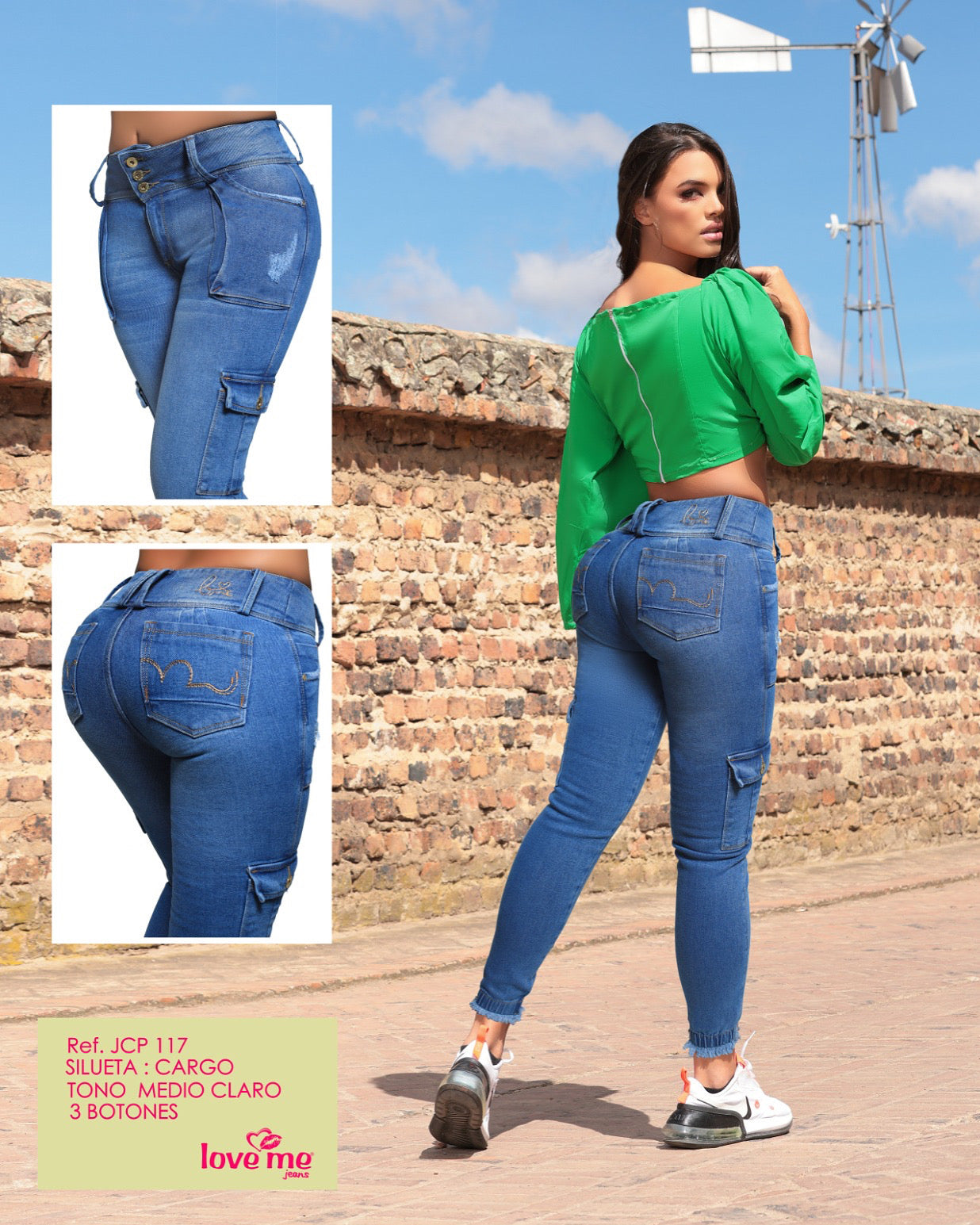 Este pantalón JCP 117 ofrece un look moderno y estiloso. Está hecho de jean de tono medio claro y cuenta con una silueta cargo y tres botones para un estilo único y atemporal. ¡Destaca entre la multitud con este pantalón moderno y elegante!