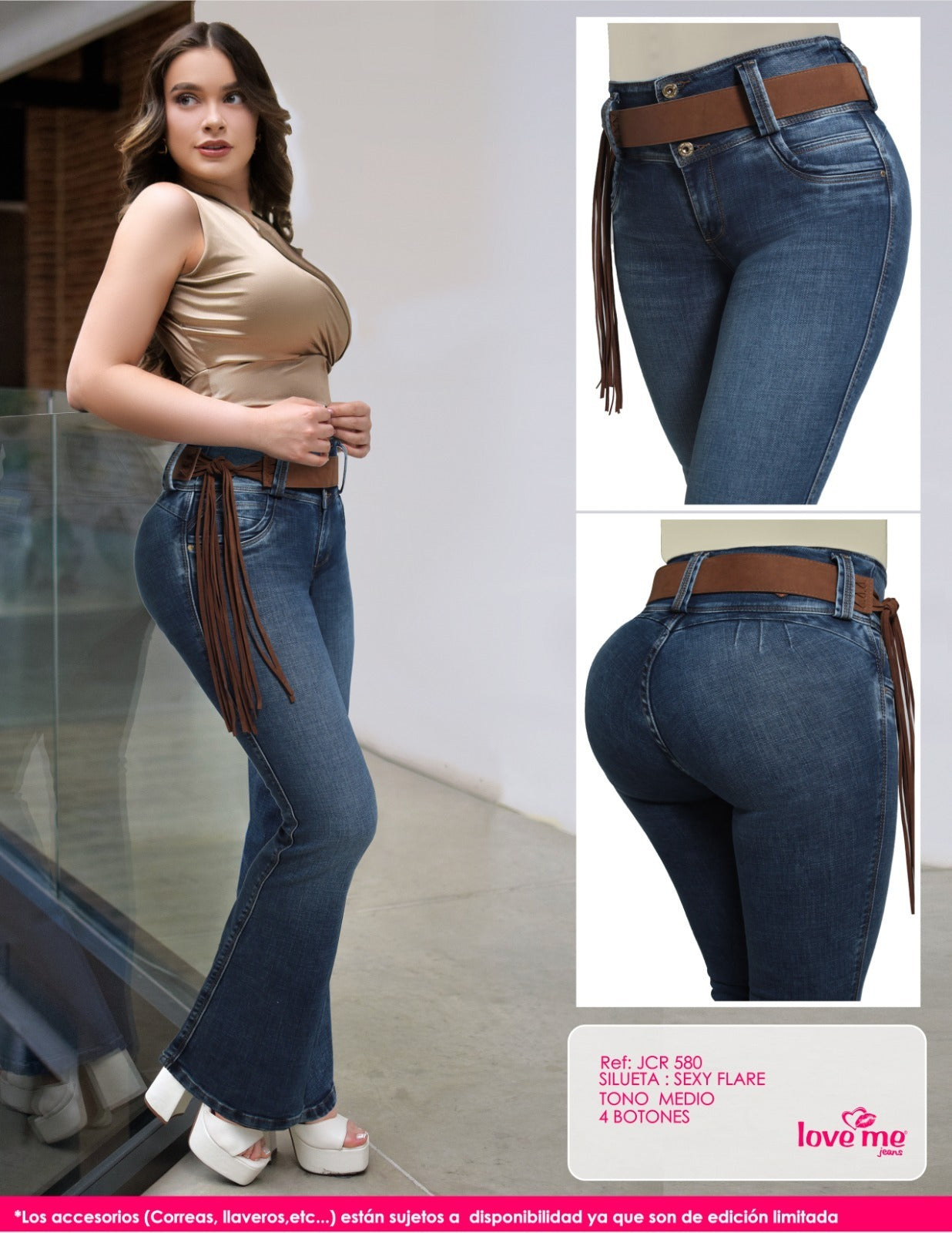 El pantalón JCR 580 presenta una silueta sexy flare que realza tu figura con elegancia. Su tono medio y tela rígida ofrecen estructura y durabilidad, mientras que los cuatro botones añaden un detalle sofisticado. Diseñado con control de abdomen y efecto push up, este pantalón moldea y destaca tus curvas para un ajuste perfecto y una apariencia segura y atractiva en cualquier ocasión.