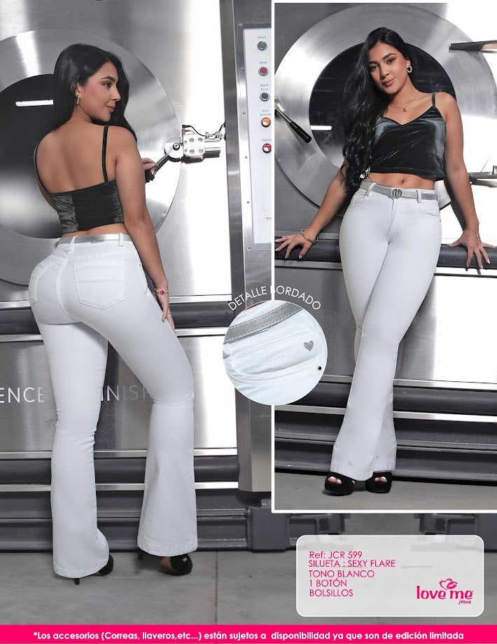 Experimenta la confianza con el pantalón JCR 599, diseñado con una silueta sexy flare que resalta tu figura de manera impecable. Su tono blanco clásico se adapta a cualquier estilo, mientras que los bolsillos traseros añaden funcionalidad sin comprometer el diseño. Con cierre de un solo botón, ofrece comodidad y elegancia en una sola prenda. Transforma tu look con esta pieza versátil que define tu personalidad.