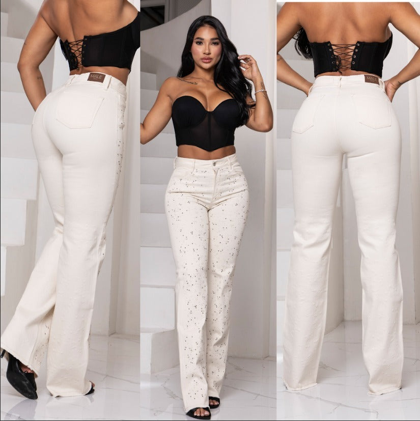Realza tu silueta con este jean versátil que combina comodidad y estilo. Fabricado en tela stretch premium que se adapta perfectamente a tu cuerpo, ofrece libertad de movimiento sin comprometer la elegancia. Los detalles de pedrería en la zona frontal añaden un toque sofisticado y contemporáneo que te permite destacar en cualquier ocasión. Perfecto para quienes buscan prendas que fusionen feminidad, modernidad y confianza en su look diario.
